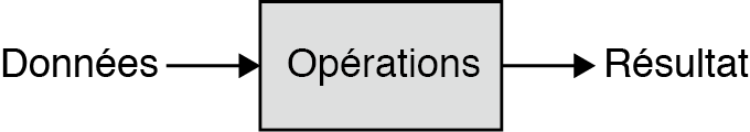 Schéma des ingrédients d’un algorithme. Un algorithme reçoit des données en entrée, qu’il traite selon des opérations dans un ordre précis, dans le but de produire un résultat en sortie. Ce résultat représente la solution à un problème donné.¶