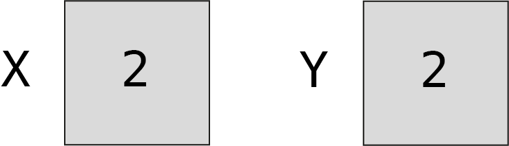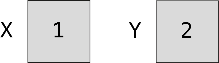 Ecrire un algorithme qui échange les valeurs de deux variables. Par exemple, si la première variable X contient 1 et la deuxième variable Y contient 2, à la fin de l’algorithme X contient 2 et Y contient 1. Pour rappel, une variable peut contenir une seule valeur à la fois.