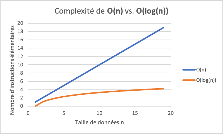 Un algorithme avec un ordre de complexité logarithmique est plus rapide qu’un algorithme de complexité linéaire
