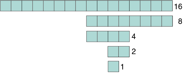 Le nombre d’étapes nécessaires pour rechercher dans un tableau de taille 16 de façon dichotomique est donc le nombre de fois que le tableau peut être divisé en 2 et correspond à 4 (voir la figure ci-dessous) parce que :