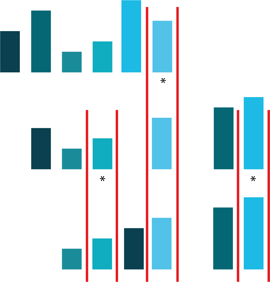 On commence par définir un élément pivot : cet élément peut être le premier élément du tableau, l’élément du milieu, le dernier élément ou encore un élément au hasard. Supposons ici que l’élément pivot est le dernier élément du tableau. Une fois que l’on a défini l’élément pivot, on met tous les éléments qui sont plus petits que le pivot à sa gauche et tous les éléments qui sont plus grands que le pivot à droite de celui‑ci (voir la deuxième ligne de la Figure Tri rapide ci-dessous).