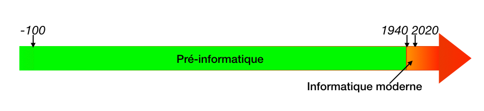 Si l’histoire de l’informatique prend ses racines loin dans notre histoire, cette science, encore très jeune, trouve sa place au milieu du XXe siècle. L’éclosion de l’informatique se situe en 1940, à la croisée d’opportunités technologiques, d’enjeux stratégiques et de contributions d’autres branches. C’est ainsi au coeur des conflits de la Deuxième guerre mondiale que l’importance de calculateurs programmables se fait sentir.