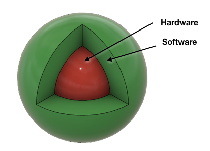 On réalise rapidement que l’informatique repose sur deux domaines bien distincts : le matériel et les logiciels (en anglais Hardware et Software, termes qui apparaissent pour la première fois en 1953).