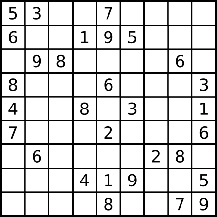 Le sudoku est un jeu en forme de grille 9x9. Le but du jeu est de remplir la grille avec une série de chiffres, tous différents, qui ne se trouvent jamais plus d’une fois sur une même ligne, dans une même colonne ou dans une même région 3x3, appelé bloc.