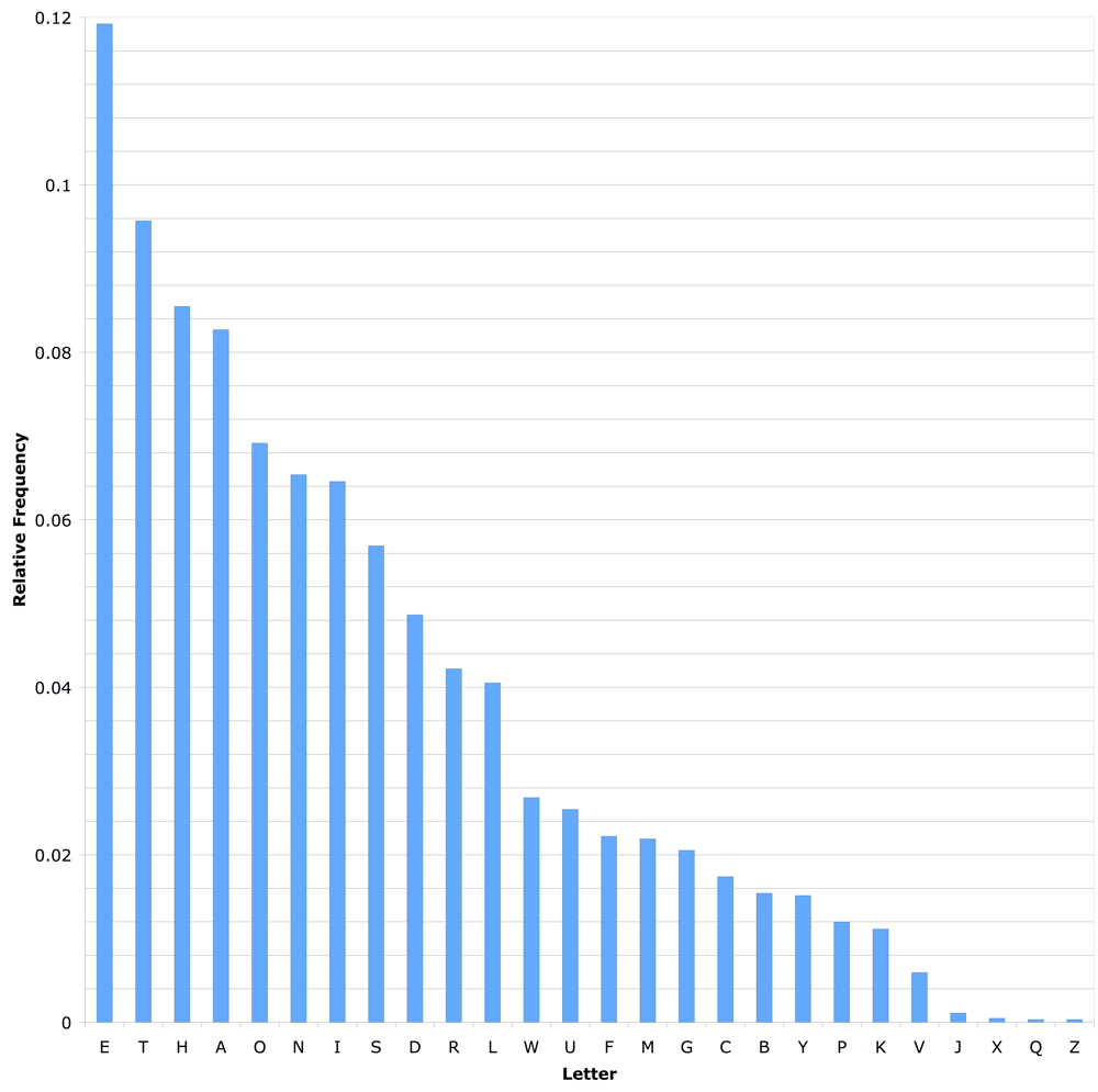 Ceci est une représentation de la fréquence moyenne de distribution des lettres dans la langue anglaise.¶