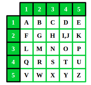 Dans l’exemple ci-dessus, on utilise les lettres de l’alphabet, mais il est plus probable qu’à l’époque les cités voisines utilisaient des expressions toutes faites dans chacune des cases, comme «l’ennemi est à nos portes» ou «envoyez-nous de l’aide».